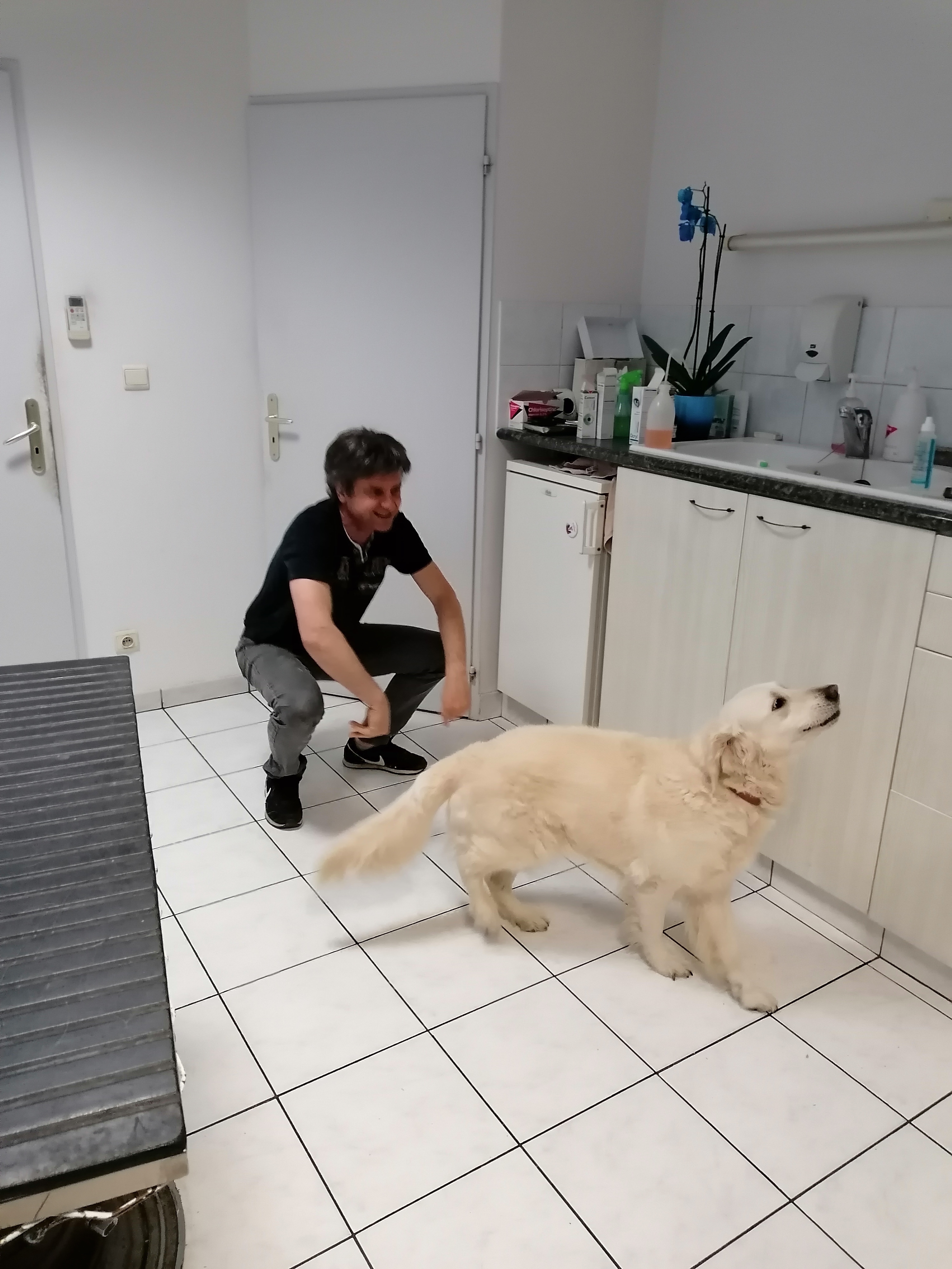 super véto qui arrive à faire des papouilles à ma chienne qui normalement n'aime pas du tout se faire toucher par un vétérinaire