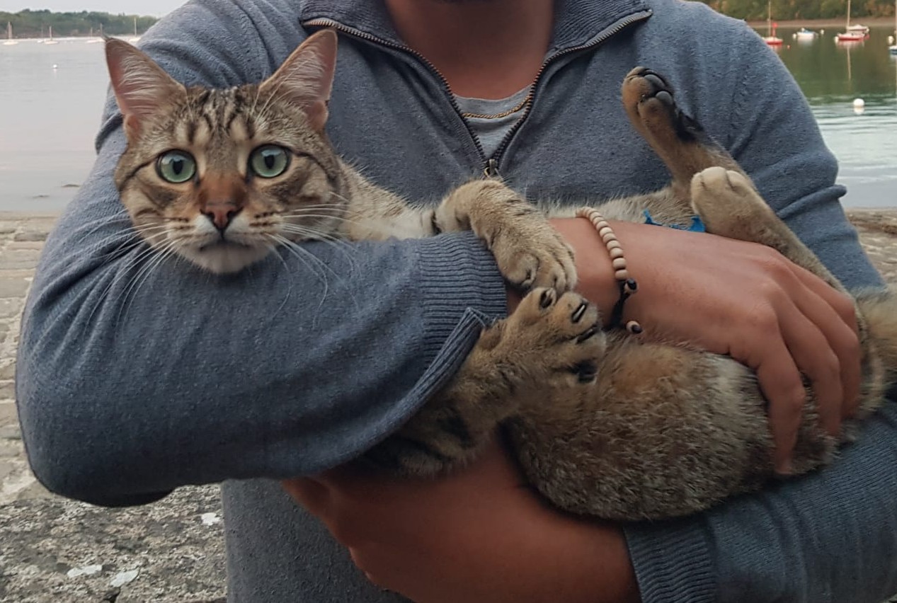 Accueil chaleureux, examen de notre chat méticuleux.
